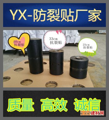 防水卷材上加上了机织布,拉力更是达到了惊人的50kn,根据裂缝宽度产品可以定做防裂贴,现在有33cm、50cm和1米的,产品的原材料更是有SBS改性沥青和我们生产的长丝机织布作为生产主材料,产品在百度、360、搜狗和中国搜索等各大搜索上频繁出现,为客户采购提供了全面的电子服务。
