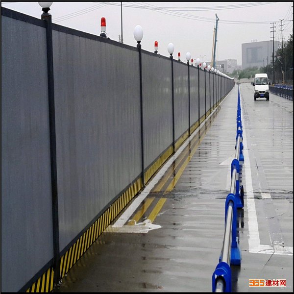 钢板,彩钢厚度为0.3Mm,高度2.5米,围挡顶部及底部分别设置10cm高的钢槽压顶和钢槽托底,每隔2.5米设一个锚固于地面的钢立柱,立柱下座为水泥地面或50cm×50cm×50cm的C25砼基础,钢柱底板四角采用膨胀