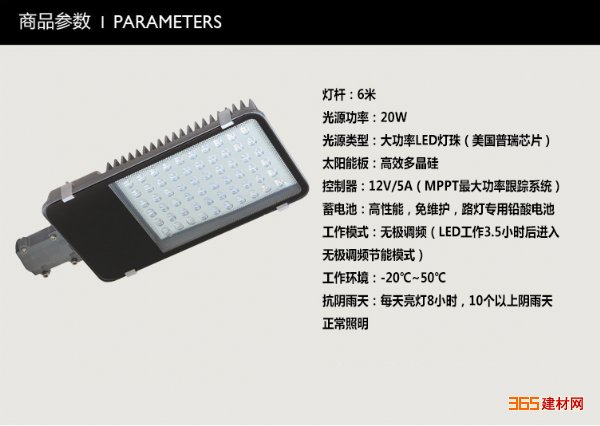 连续抗阴雨天:每天亮灯6小时,6个以上阴雨天正常照明,全年正常亮灯
