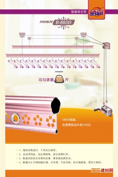(4)加厚超强承重铝合金材质晾杆,承重增加200%;