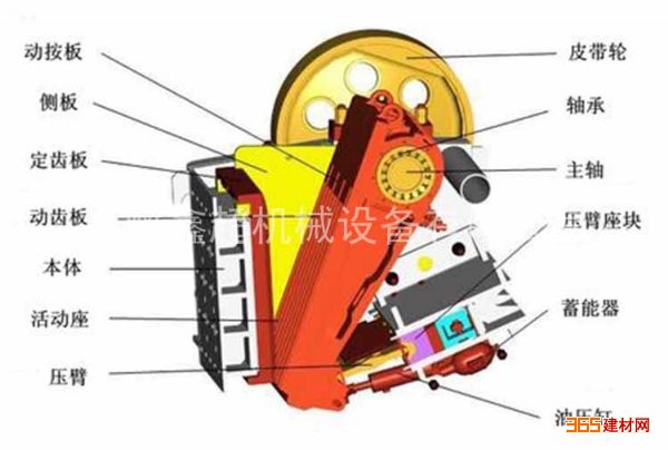 俗称颚破,又名老虎口。由动颚和静颚两块颚板组成破碎腔,模拟动物的两颚运动而完成物料破碎作业的