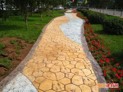 青石板,木板及砖石等等;它能够刻意地表现出自然材质的粗砺,凸凹不平和复杂的纹理,也可以平整如水,光亮如镱镜,无限的色彩组合及模具选择使地面呈现出光鲜亮丽的铺装效果。