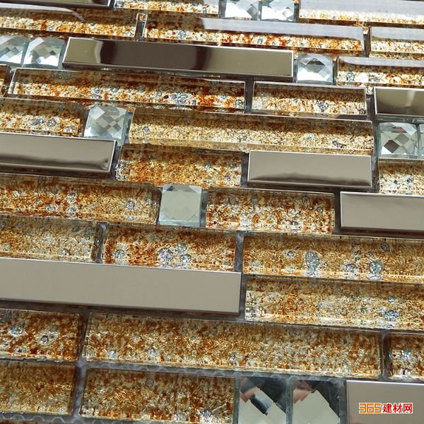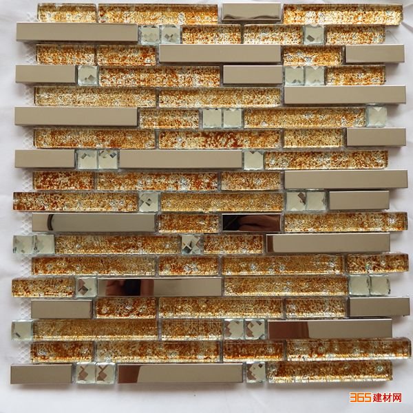欧式长条马赛克背景墙 KTV玻璃瓷砖 金咖色水晶吧台门头