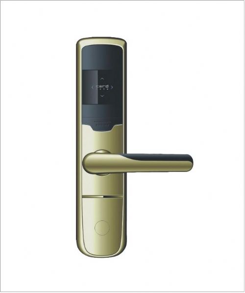 锌合金;颜色:银色、金色,面板尺寸:长324MM,宽74MM,读卡时间:开门时间:<0.2秒,按动把手开门一次有效,5秒后自动上锁;欠压指示:低于4.2V报警后还能开启50次; 要求门厚:38-55MM(超出时要特别注明),门边距120MM以上; 配 置:国际性标准五锁舌,防撬,防拨,且有防破坏报警功能;隐蔽式安装的机械钥匙孔,即美观即能防止恶意破坏,标配欧标1D