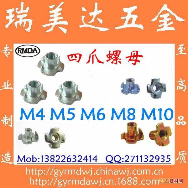 四爪螺母固定在板上,爪子的垂直度及坚硬度决定了螺母是否能牢固地钉钉在板上,以及承受巨大的坚固拉力。