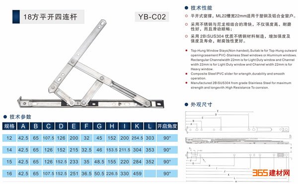 4.单边外推型窗撑适用于重行顶开式窗户;分左右单边开启,对称的包角结构使窗户关闭时准确可靠,密封性更好。