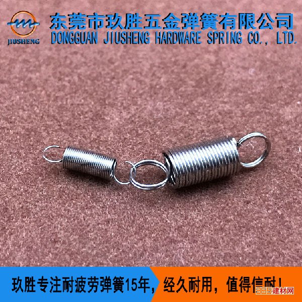 高碳钢等等。生产的产品主要应用于交通工具、玩具、家具、电子设备等领域。生产的拉伸弹簧具有耐腐蚀、抗疲劳、钩不易变形的特点,使用寿命比起同行业增长了20%以上。