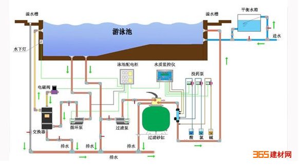 想建室外游泳池需要哪些设备呢?室外泳池设备要求只需要几台可砂缸就可以帮您完成泳池水循环过滤、杀菌等程序,消毒处理一般使用自动投药泵、