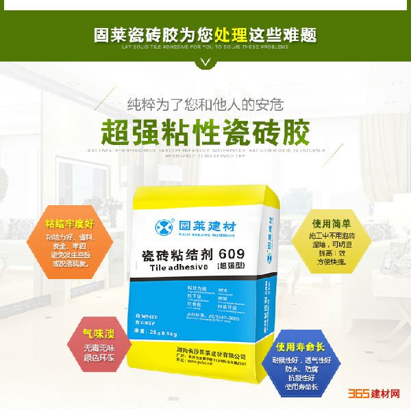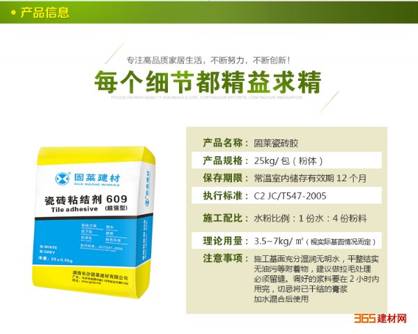 瓷砖胶与清水按约4:1(25kg/包,约配6~6.5公斤水搅拌成均匀膏糊状,电动搅拌效果*佳。若胶浆静置十分钟后再搅拌一下可增加强度。
