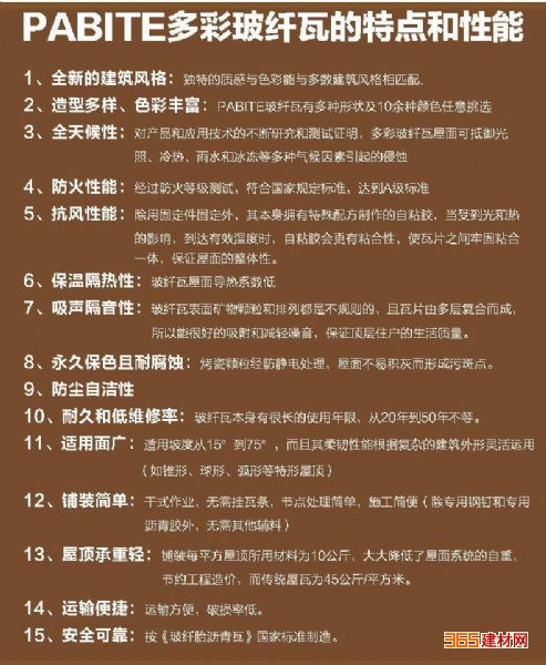 对产品和应用技术的不断研究和测试证明,多彩玻纤瓦屋面可抵御光照、冷热、雨水和冰冻等多种气候因素引起的侵蚀。