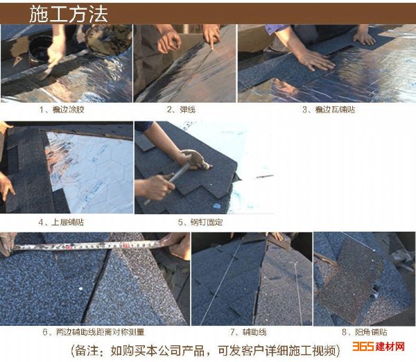 干式作业,无需挂瓦条,节点处理简单,施工简便,两人两天能铺100平方米,铺装过程除玻纤瓦*钢钉和*沥青胶外,无需其它辅料。