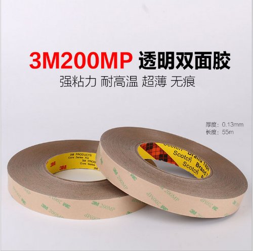 无基材基材双面胶(直接由丙烯酸胶涂布而成):如3M467、3M468、3M9473等;