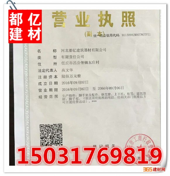 铆钉将斜杆头与钢管身固定。至于立杆的连接方式是以四方管连接棒为主,而连接棒已固定在立杆上,不用另外的接头组件来组合,可省却材料遗失及整理的麻烦。(销售电话:15031769819刘经理)