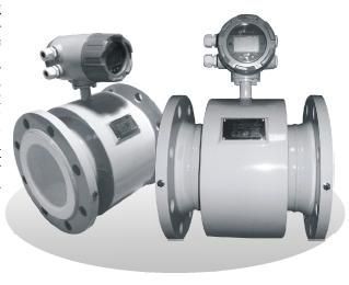 绝缘材料的非导磁合金短管。两只电极沿管径方向贯通管壁固定在测量管上,其电极头与内表面基本平齐。励磁线圈由双向脉冲励磁时,将在与测量管轴线垂直的方向上产生一磁通密度为B的工作磁场。此时,如果具有一定电导率的流体流经测量管,将切割磁力线感应出电动势E,电动势E正比于磁通密度B、测量管内径D与平均流速的乘积、电动势E(电流信号)由电极检出并通过电缆送至转换器。转换器将流量信号放大处理后,可显示流量、总量,并能输出模拟、脉冲等信号,用于流量的控制与调节。