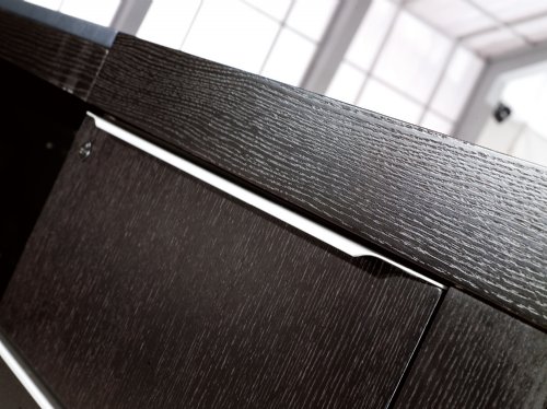 在橡木木天然的木色中,金色和黑色曲线跃然眼前,色彩醒目且极具流动感,任何一个切面都可以清晰地表现出木纹的美感。而且斑马木取材率低、木质硬、加工难度大,所以用斑马木制作出来的每一件产品都满溢浓烈的自然气息。