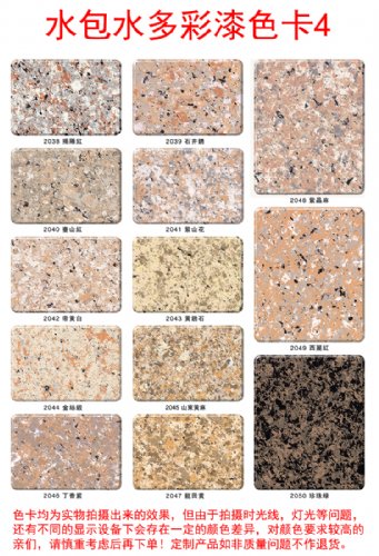 天然石材及性能优异的助剂所制成。能够在基材表面形成豪华亮丽装饰和保护层,有立体、粗犷、多彩的效果。