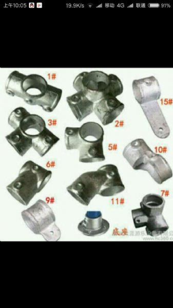 临边防护栏连接管件 楼梯护栏管件 弯头 三通 四通