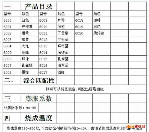 ,无铅玻璃颜料,适合各种玻璃制品和高、中、低温花纸色料,低温陶瓷制品,珐琅及骨瓷等。