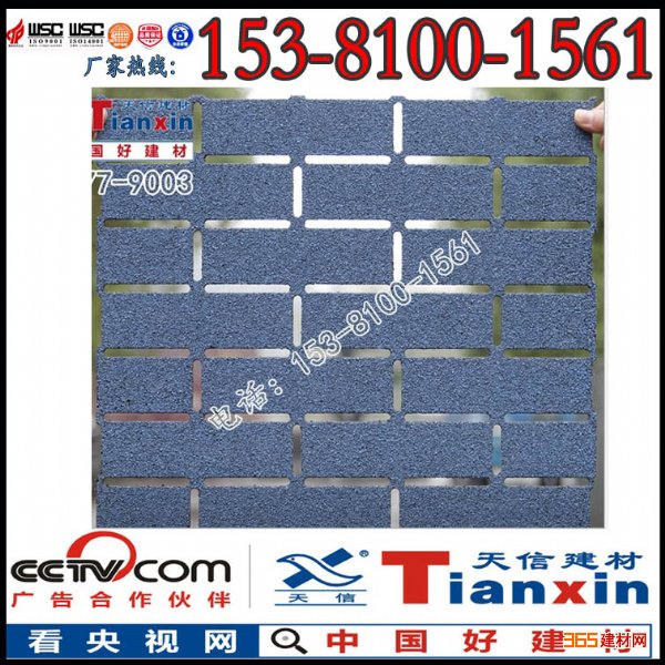 是天信企业的专利产品(产品专利号:ZL200920207987.9),其以玻纤毡为胎基,经浸涂改性石油沥青,上表面覆盖矿物颗粒,另一面撒以细砂制成,为外墙装饰、隔热、保温、防水为一体的饰面材料,既适合大面积施工,又解决了沟缝的难题,再配以天信量身定制的*防水