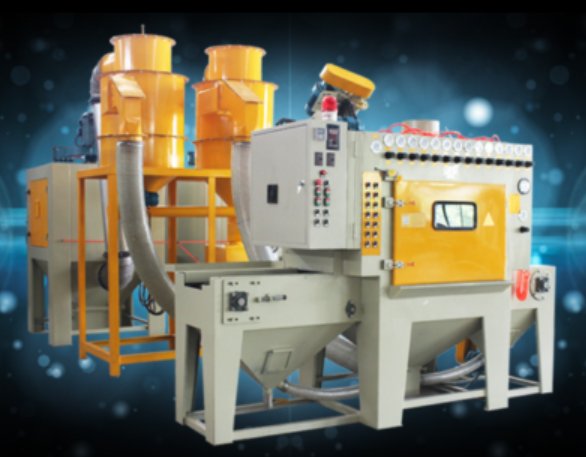 喷砂枪,喷砂枪的角度 高度 摆动幅度 喷砂压力等均可自由调节,在完成喷砂工艺后,隔舱设置有吹净系统,可将处理好的产品表面粉尘及砂料进行清理,产品随收料装置进入到主机喷砂室内进行喷砂作业;采用上悬式摆动喷砂,即利用压缩空气在