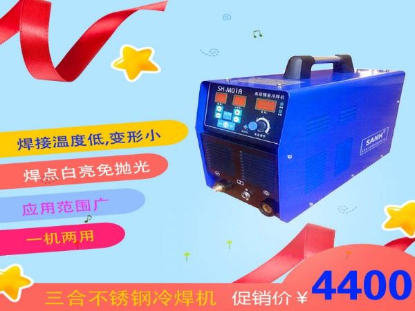 不锈钢焊接的半数字化冷焊设备,所有焊接参数均由焊机微电脑控制,具有焊点白亮不发黑不需抛光、焊点均匀美观,焊接温度低变形小、体积小携带方便、价格低廉操作简单,操作简单薄板焊接不易穿孔无需专业焊工操作等特点。无操作经验的人士在简单练习后即可以焊出很好的效果。不锈钢焊接效果可媲美激光焊,所以被称为仿激光冷焊机或超激光冷焊机。