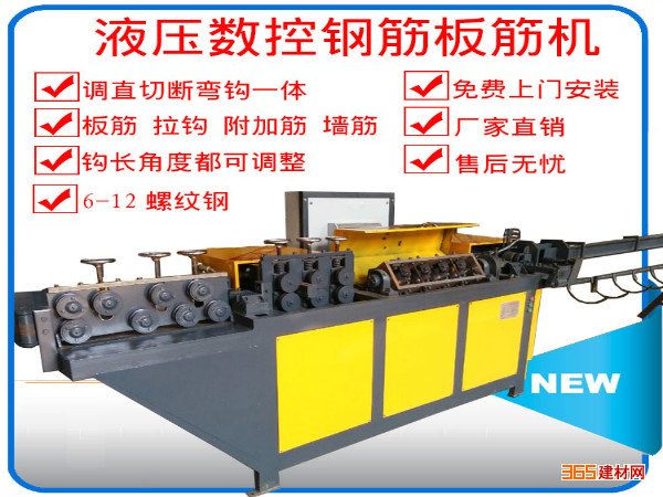 2.本机器集调直切断.弯钩一体机,电脑数控输入,所有两头带钩的钢筋均可一次成型,变钩角度90度、135度、180度可调;钩长5cm-10cm可调;弯好钢筋长度从*短0.16M到*长9M。