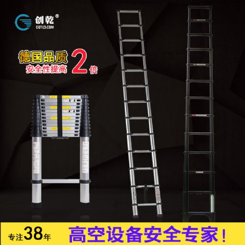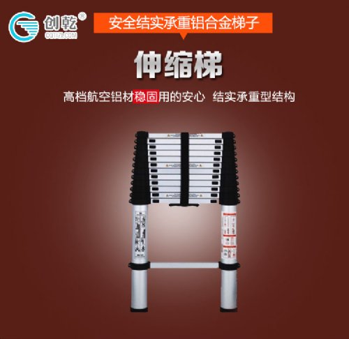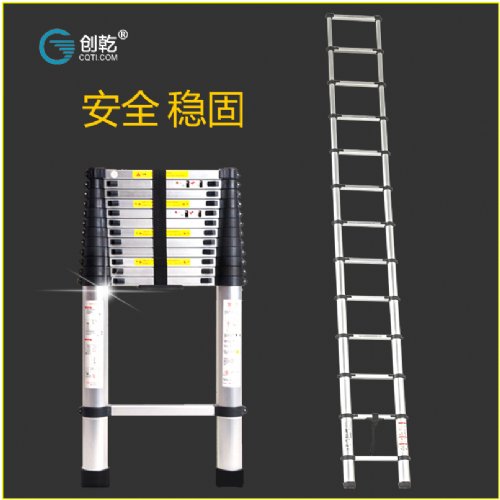 2.创乾竹节伸缩梯子的管长稳固性的要长于普通的管长49cm:42cm,多了7cm长,竹节梯一般伸长的踏板间距是30cm,这依旧意味着在伸缩梯神开之后高度重叠的部分多了7cm,减少了梯子的下压弧度,使梯子更稳固。