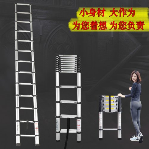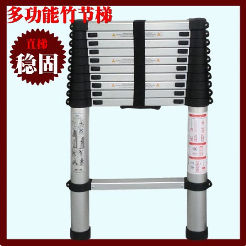 1.竹节梯的特点是方便携带收缩起来小,伸出来之后很长,比如3.8米竹节梯,收缩后长度是0.86米,有13节,犹如钓鱼竿一样进行伸缩。