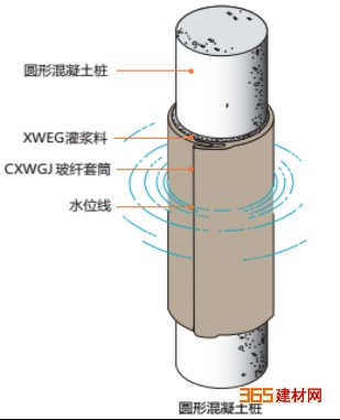 水下玻纤套筒加固系统:选用高强度的环氧灌浆料和高强防腐蚀玻纤套筒来完成修复工作