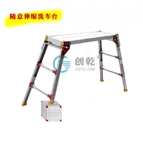 创乾工作台伸缩式洗车台梯凳 铝合金加厚凳子 折叠梯 稳固装修马凳