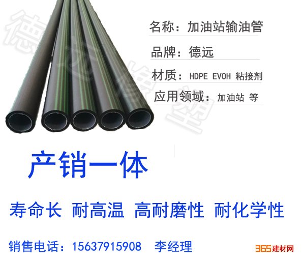 热熔胶层的EVOH管;B、内层是PE或PEX层,外层是EVOH阻氧层,两层间是热熔胶层的EVOH管;C、加油站双层管内层是PE或PEX层,中间层EVOH阻氧层,外层再覆盖一层PE或PEX层,内外两层间各有一层热熔胶层的EVOH管。前两种EVOH管都是三层结构的,后一种是五层结构的。五层结构的EVOH管生产设备也相应复杂些。 加油站双层管有如下特点:1.加油站双层管内层管有EVOH树脂内衬,保证管道的防渗漏性能5.使用高效稳定的电熔焊接系统,安装方便快捷,适用于各种复杂工况安装6.具有化学建筑材料测试中心开具的检测报告,品质有保障2.内层管有抗静电层,保证管道的使用安全3.进口hdpe原料生产,保证产品质量4.加油站双层管额定使用压力为1MPa,额定使用温度:-40℃到50℃,满足使用需求。