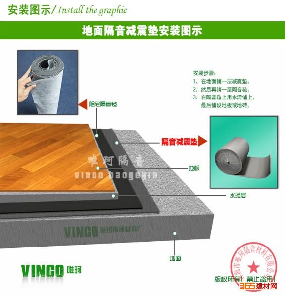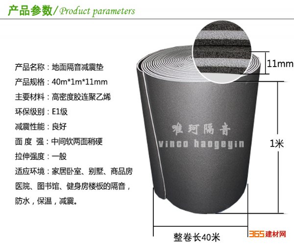 3.)隔音减震垫是一种绿色环保,使用寿命30年以上。施工简单,安装时用刀具裁剪,无需其它工具。