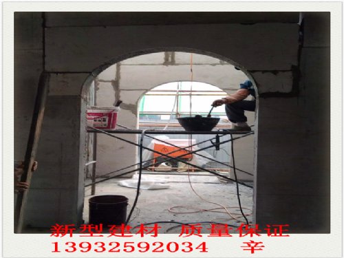 将上好浆的墙板搬到要拼装位置就好位后,用铁撬将墙板从底部撬起用力使板与板之间靠紧、使砂浆聚合物从接缝挤出,然后刮去凸出墙板面的浆料,一定要保证板与板之间接缝浆饱满,*后用木楔将其临时固定。