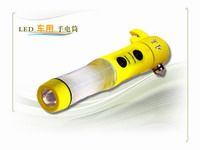 此类车用LED手电筒兼具了击破(车窗)玻璃、切割安全带、15只红光LED警示信号灯,汽车出现故障时,红光闪烁起到闪光警示(代替三角牌使用)、应急照明、有强力的磁性可吸附在汽车的表面及防雨等多重功能。