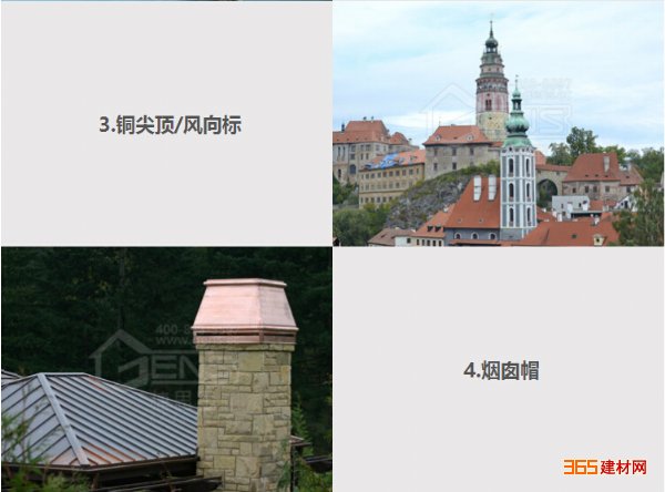 铜瓦片以及风向标等铜质屋面装饰系统。铜灯款式多样、设计精美,包括
