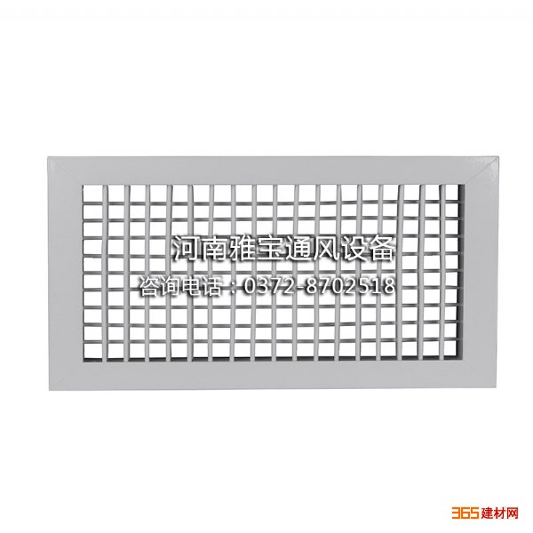 送风口.双层百叶风口有两层可调节角度的活动叶片,短叶片用于调节送风气流的扩散角,也可用于改变气流的方向;而调节长叶片可以使送风气流贴附顶棚或下倾一定的角度(当送暖风时).双层百叶风口的外层叶片或单层百叶风口的叶片可以平行于长边,也可以平行于短边,可以根据客户的要求来选择.