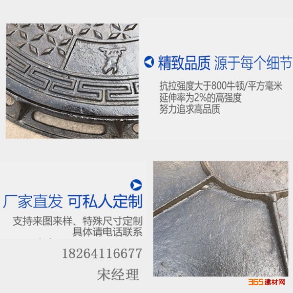 2、承载高:承载力远超其它种类产品,承载压力大,防断裂、车辆坠落等安全事故。3、安全性:井盖结合严密,不会产生跳、跷、响、移位等现象,无噪声、安全可靠。4、防跳盖:采用防震胶圈,使得车辆经过时无噪音产生,符合环保要求。5、防 盗:普通防盗设计、新型防盗设计,井盖和井圈采用高强