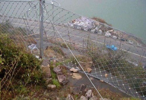钢丝绳网、环形网、固定系统、减压环和钢柱四个主要部分构成。钢柱和钢丝绳网连接组合构成一个整体,对所防护的区域形成面防护,从而阻止崩塌岩石土体的下坠,起到边坡防护作用。