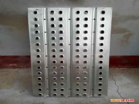 2.我公司生产的钢跳板具有规范成型的排列凸孔,防滑系数高、效果好。跳板两侧的工字形设计和内部嵌入式筋板的牢固焊接更增加了其强度,3米长脚手板可同时承受5-6人的站立而不变形,坚固耐用。