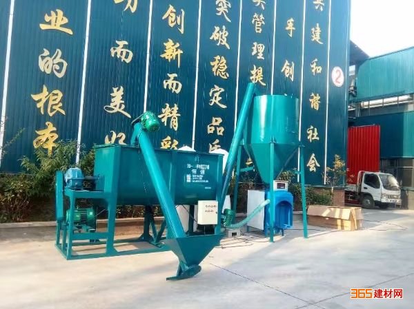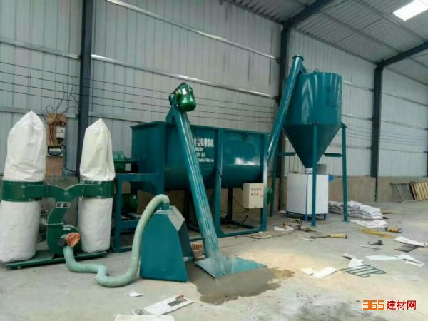 包装机等组成。该设备设计紧凑、性能优良,2-3人可操作。各种原料从一个料斗上料,先投入水泥跟纤维等添加剂搅拌3分钟,然后加入