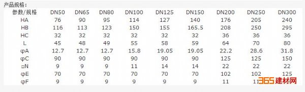 参数/规格 DN50 DN65 DN80 DN100 DN125 DN150 DN200 DN250 DN300
