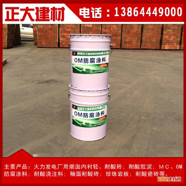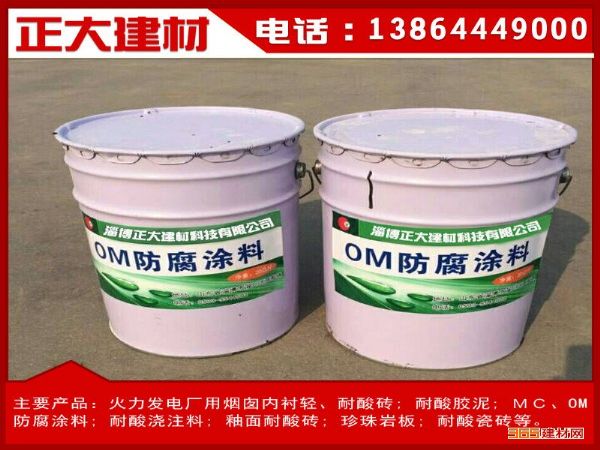 填料提高烟囱的耐磨,防腐蚀性能,OM防腐涂料抗烟气中硫化氢等介质腐蚀,抗冲刷,延展性能好,耐酸耐,碱,和传统的