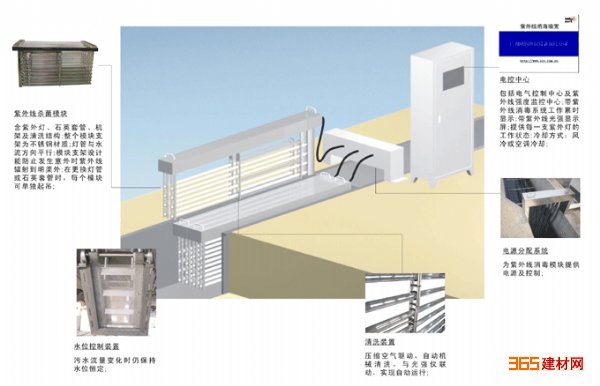 明渠式紫外线消毒设备应包括:紫外灯模块组,模块支架,配电中心,系统控制中心,水位探测及控制输出等组成。