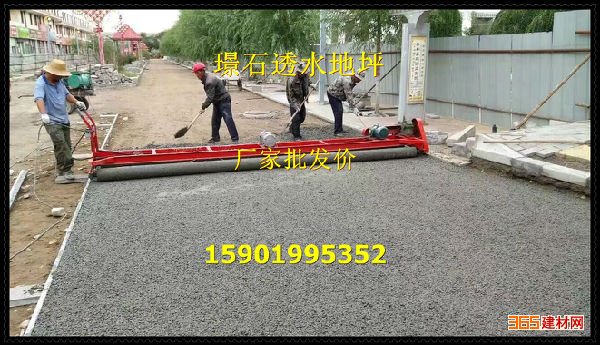 d. 表面修整:对碾压后的路面应及时修饰彩色透水混凝土的边角,对于缺料的部位应填料修整,对于较干部位可先均匀喷洒一层水,再加料修整。