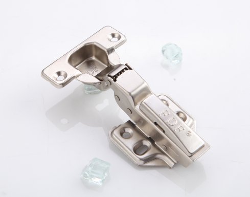 铰链全盖大调节盖位21到12大调节,特别是第三代中弯调节比第二代大几亳米从原来盖9到6亳米提升到12到2亳米盖位调节位达到10亳米,FDF铰链大调节超出同行业的标准,创新同行业新标准,第三代FDF动感二段力缓冲静音阻尼大弯铰链提出全新自创造冲压大弯侧面无拉伤表面技术,盖位比第二代提高开孔位5mm调节开门角100度关门没缝隙,FDF第三代液压缓冲静音
