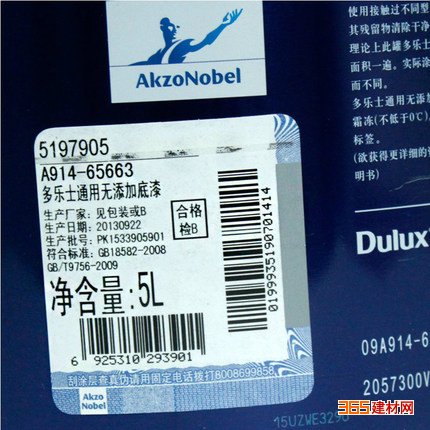 多乐士通用无添加底漆内墙乳胶漆 白色室内墙面漆涂料油漆18L