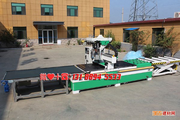 一天8小时正常生产可加工40-50张板材。这款特价机型一经推出就成为热门机型,无论是刚要办厂的创业者还是经营多年的老厂换设备都有很多老板订购了此款设备。双工序排钻数控开料机主要用于板式家具生产下料,可完成打垂直孔、拉槽、开料。在所有数控开料机类型中是加工效率*高的一款设备。这款设备机头部分有两个6KW风冷主轴带一个9垂直排钻包。两个主轴可装夹不同直径的