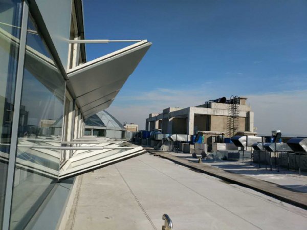 厂房上悬高窗联排70°手动开启手摇曲臂开窗器
