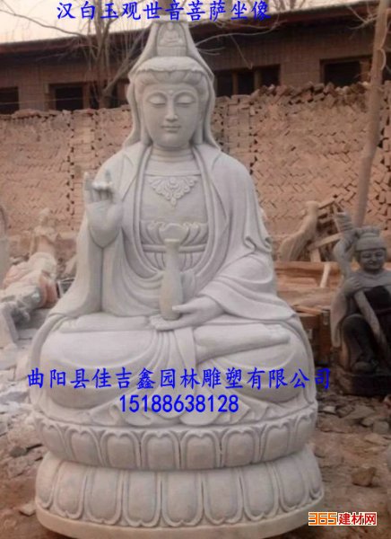 汉白玉文殊普贤菩萨雕像制作 滴水观音观世音菩萨坐像