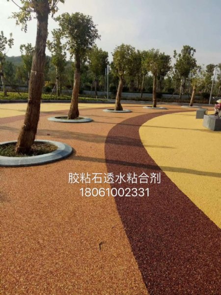 石子粘结在一起形成的具有透水功能的一种路面或地坪.胶粘石透水地坪广泛用于公园、广场、小区、庭院、游泳池旁、洗浴中心等。具有透水性能高、承载力强、散热性好,能为人类构筑温和、舒适、便捷的生活环境。
